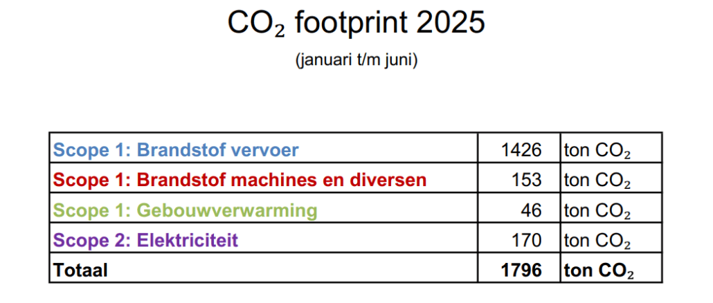 De eigen CO2-emmissie zijn inzichtelijk gemaakt door de CO2-footprint.